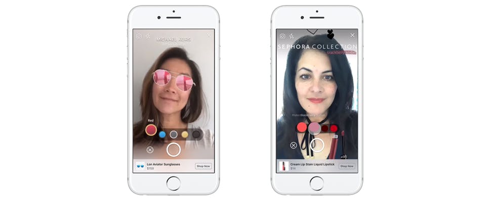 Het bedrijf introduceert namelijk een Video Creation Kit voor adverteerders. Die kunnen hiermee video-advertenties bouwen met een augmented reality-insteek. Als voorbeeld is te zien hoe een Facebook-gebruiker een virtuele zonnebril op zet en uit verschillende kleuren kan kiezen. Ben je tevreden, dan zie je gelijk een koop-optie. Of vraag eerst aan je Facebook-vrienden hoe ze het vinden staan.