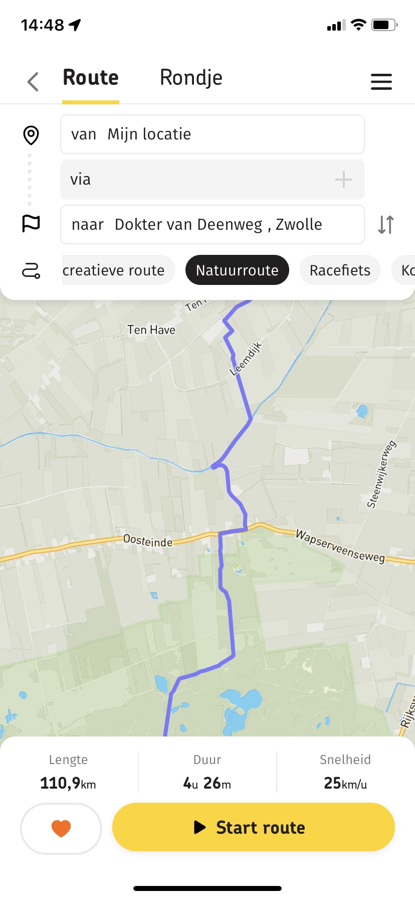 Met de Fietsersbond Routeplanner is het nu mogelijk ook onderweg een route te plannen of aan te passen. Door de natuur en met weinig auto’s, de kortste route, recreatief of juist snel, geschikt voor racefietsen, wel of geen delen zonder verhard wegdek, veerpontjes, doorsteekjes, er zijn ruim mogelijkheden de route te personaliseren.