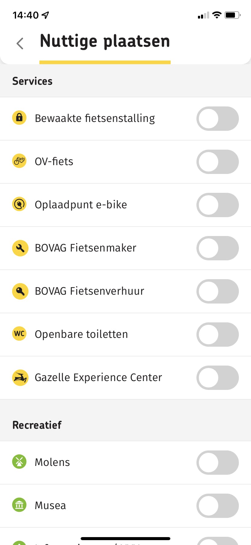Het hoort bij de missie van de Fietsersbond om behalve voor dagelijks verkeer de fiets ook als hét middel voor recreatieve tochtjes te promoten. Hierbij hoort ook de mogelijkheid op de kaart nuttige plaatsen zoals stations en wegwerkzaamheden te tonen net als recreatieve elementen zoals molens, musea en bankjes, horeca en overnachtingsmogelijkheden en services zoals een bewaakte fietsenstalling, oplaadpunten, openbare toiletten en fietsenmakers en fietsverhuurders.