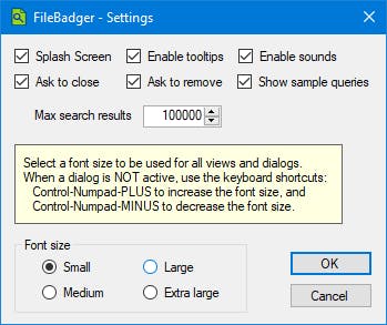 Voor alle duidelijkheid: FileBadger maakt geen gebruik van een indexeringsservice zoals de zoekfunctie van Windows en zoekt evenmin in de documenten zelf. Het programma beperkt zich tot de map- en bestandsnamen, eventueel in combinatie met eigenschappen als datum van creatie en bestandsgrootte. De zoektocht blijft tevens beperkt tot de map(pen) – en bijbehorende submappen – die je zelf instelt.