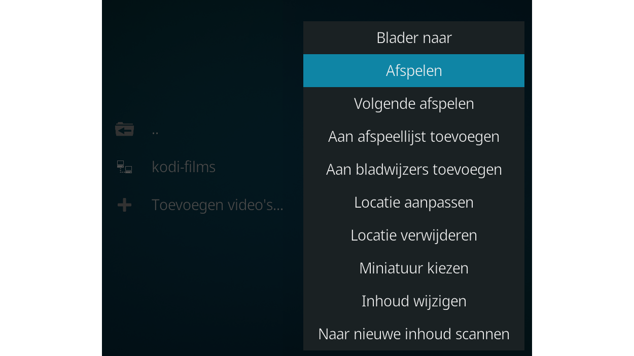 Klik in Windows met rechts op je locatie (in Android druk je langer met je vinger op die optie) en je ziet een menu met duidelijke opties zoals Afspelen, Aan afspeellijst toevoegen, Aan bladwijzers toevoegen, Locatie aanpassen, Locatie verwijderen, Inhoud wijzigen en Naar nieuwe inhoud scannen. Voor andere mediatypes volg je een vergelijkbare aanpak.