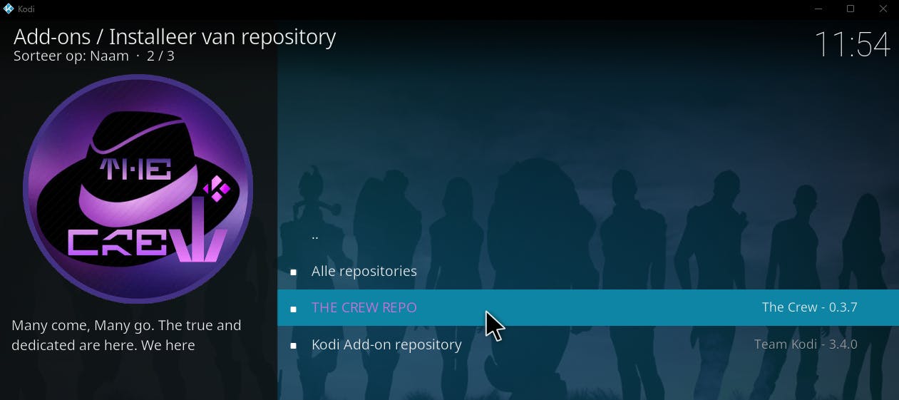 Het installeren van nieuwe Kodi-build (hier: The Crew Wizard).