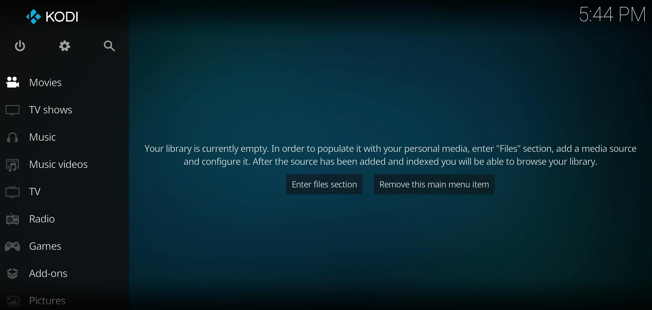Kodi voorziet al in een aantal typische mediarubrieken.
