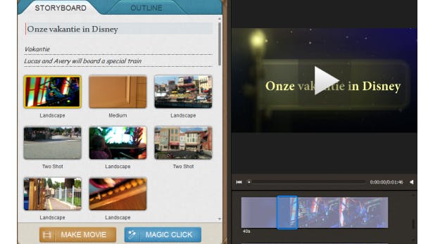 Door op de optie Make Movie te klikken, worden videofragmenten automatisch geselecteerd en zal er direct een video worden gemaakt. Wil je liever eerst nog iets aanpassen, dan kun je kiezen voor Edit Movie. Videofragmenten worden dan alsnog toegevoegd aan het storyboard, maar je kunt zelf nog wat kleine aanpassingen doen of andere video's gebruiken.