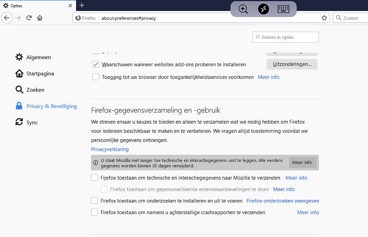 Firefox en privacy-instellingen