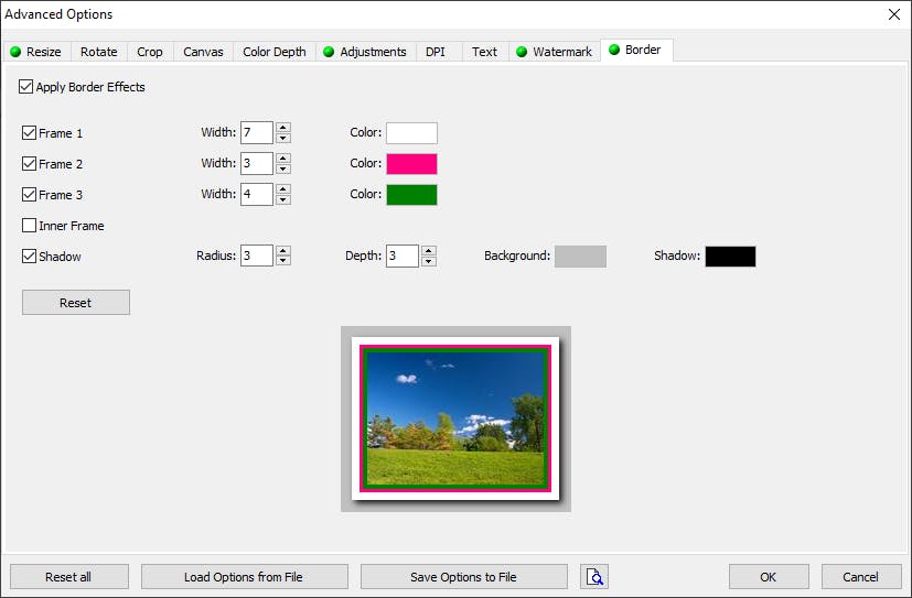 Vind je de witte rand die je bij Canvas kunt maken te karig, dan vind je op het tabblad Border nog meer mogelijkheden. Hier kun je meerdere randen toevoegen en zelfs een schaduw onder je foto plaatsen.