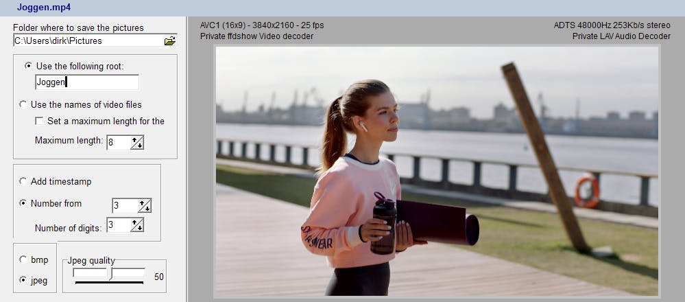 De knop met de wekker brengt je bij de intervalometer. Hiermee kun je systematisch afbeeldingen laten extraheren volgens een bepaald aantal frames. Stel je het interval bijvoorbeeld in op twaalf frames, dan toont het programma eerst hoeveel afbeeldingen dit oplevert waarna je de intervalometer aan kunt zetten. Iedere twaalf frames zal de tool dan een afbeelding uit de video halen. In de geëxtraheerde videoframes kun je bovendien een teller, tijdstempel of nummer toevoegen. Bovendien is het mogelijk om een andere beeldverhouding te forceren.