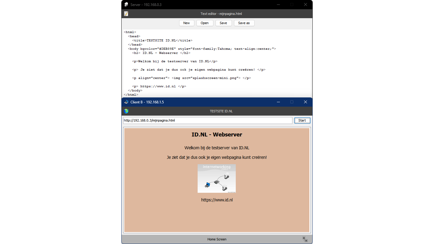 Nu zou je vanaf je webbrowser je webserver moeten kunnen bereiken met het adres www.mijnsite.nl/mijnpagina.html.