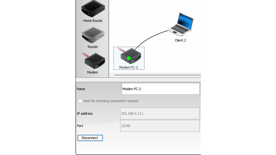 Een andere interessante optie is om het gesimuleerde netwerk van Filius te koppelen aan je fysieke netwerk. Om dit te testen, installeer je Filius op twee computers binnen je thuisnetwerk. Maak op elk van beide een netwerk met een client (bijvoorbeeld 192.168.0.1 en 192.168.0.2) en een modem. Bij het ene modem plaats je een vinkje bij Wait for incoming connection request en bevestig je met Activate. Op de bijbehorende client installeer je een Echo server en start je deze. Op het tweede modem vul je het fysieke ip-adres van je eerste computer in en druk je op Connect. Voeg vervolgens aan je client een Generic Client toe. Nu kun je berichten van de ene client naar de andere sturen via je fysieke netwerkverbinding. Zorg er wel voor dat bijvoorbeeld je Windows-firewall dit verkeer niet blokkeert.