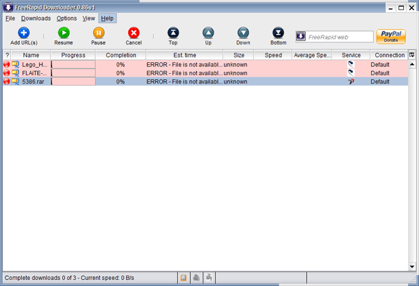 FreeRapid Downloader geeft aan dat er 'verschillende fileservers' worden ondersteund, maar vertelt vervolgens niet welke. Dat is heel storend, omdat er nogal wat dode links aanwezig zijn op dit soort servers en de foutmelding die u vrijwel altijd krijgt bij een mislukte download, is dat het bestand niet bestaat. Dus ook wanneer u downloadt van een server die niet wordt ondersteund, terwijl bij een download via de browser wel slaagde via die server. Omdat u op die manier eigenlijk nog vaker 'misgrijpt' dan wanneer u gewoon via de browser werkt, vragen wij ons af in welk opzicht FreeRapid Downloader nu echt zoveel sneller is.