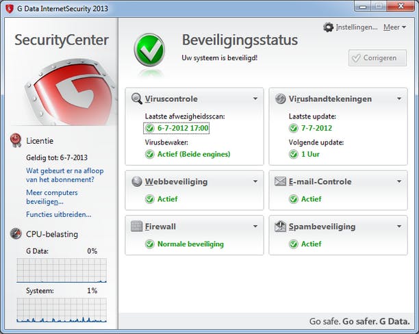 De software van G Data is erg overzichtelijk en creëert geen paniek wanneer er eens iets mis is. De software heeft bovendien een goede reputatie, scoort de laatste jaren steevast hoog in allerlei beveiligingstests. Jammer is wel dat er behalve BankGuard weinig nieuwe functies bijgekomen zijn. Sandboxing, het in een afgeschermde omgeving draaien van een programma, ontbreekt bijvoorbeeld nog altijd, terwijl chatbescherming nog altijd beperkt is tot Windows Messenger en Trillian.