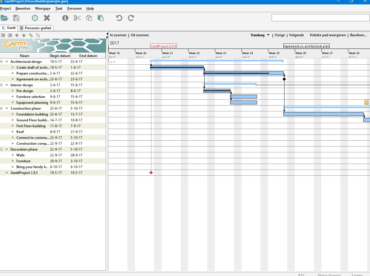 Zodra je aan een klus begint die uit ten minste twee op elkaar volgende handelingen bestaat, ben je – doorgaans onbewust – bezig aan een project. Een project als ‘koffie zetten’ kan iedereen wel uit zijn hoofd managen maar zodra het complexer wordt (denk aan een verbouwing of het organiseren van een groot feest), kan een beetje computerhulp geen kwaad, bijvoorbeeld in de vorm van projectmanagement-software GanttProject. Hierin leg je alle stappen van een project vast, inclusief hun onderlinge afhankelijkheid, de benodigde personen en financiële middelen. Zo houd je vanzelf zicht op de voortgang.
