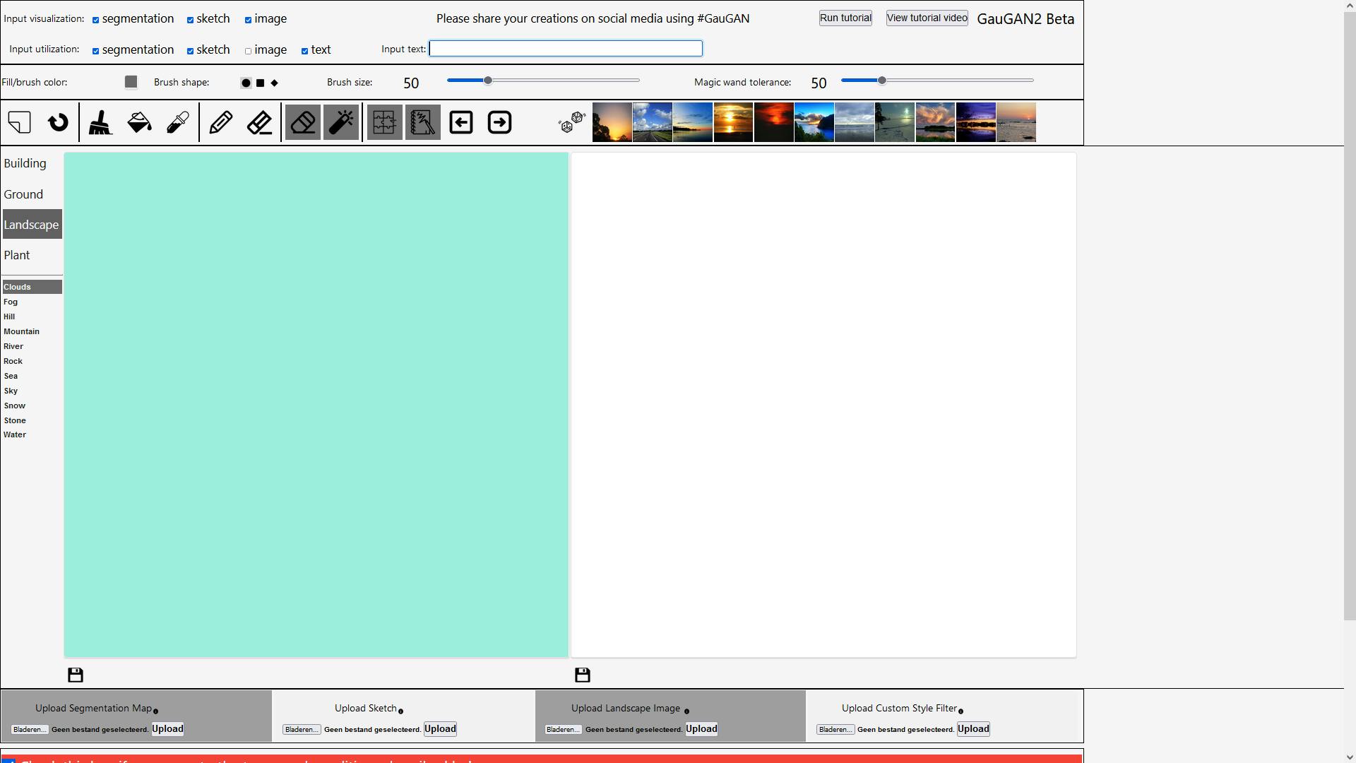 Vaak eist het gebruik van dit soort AI zeer stevige hardware, maar GauGAN is er in een onlineversie, waardoor je het in principe vanaf elk platform kunt gebruiken.
