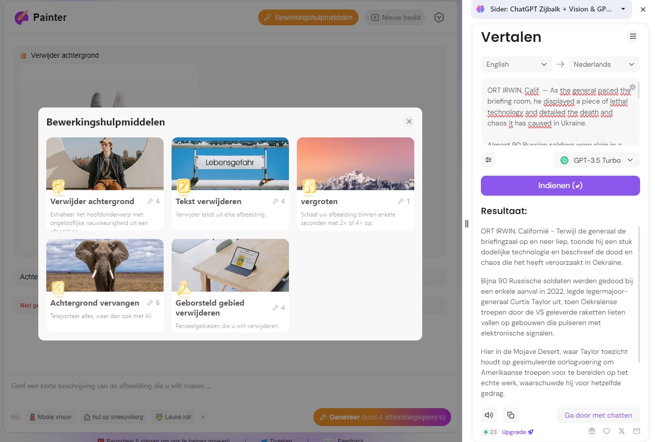 De tool heeft zelfs een Painter-module om de achtergrond van een foto te verwijderen. Wanneer je tekst op een webpagina markeert, verschijnt het Sider AI-pictogram waarmee je verschillende opdrachten op de inhoud loslaat. Je vraagt Sider om tekstfragmenten samen te vatten of om tekst te vertalen. Bovendien kun je vragen stellen over de inhoud en de reacties van de verschillende AI-bots vergelijken.