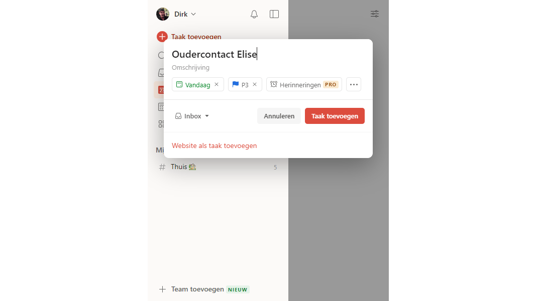 Er zijn drie serviceniveaus: gratis, Premium (3 dollar per maand) en Business (5 dollar per persoon per maand). Dit timemanagementsysteem werkt met projecten zodat je de lijst taken kunt organiseren in bijvoorbeeld een project Boodschappen, een project Werk en een project Netflix-tips. Elke taak verbind je aan een bepaald moment en het is mogelijk om rechtstreeks websites aan een item te koppelen. De extensie bespaart je tijd, doordat je niet voortdurend heen en weer hoeft te klikken tussen de apps.