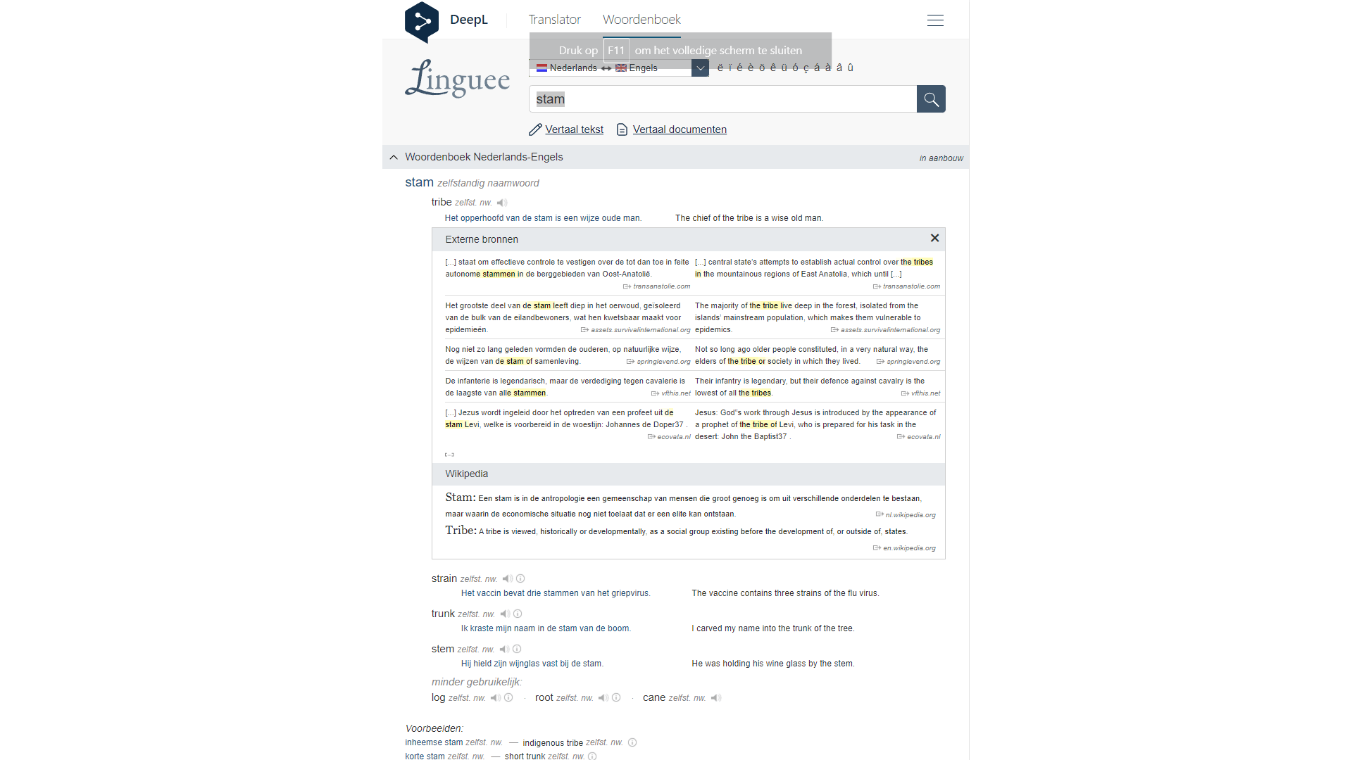 Net als Linguee ligt de focus bij Reverso Context voornamelijk op contextuele woordenboeken. Deze site is wel minder selectief qua bronmateriaal en de voorbeeldzinnen zijn meestal korter en eenvoudiger, wat het geschikter maakt voor informeler gebruik. Reverso ondersteunt momenteel 26 talen, waarvan sommige (nog) niet beschikbaar zijn op Linguee, en biedt daardoor een handig alternatief. Net als bij Linguee kun je de uitspraak van woorden beluisteren.
