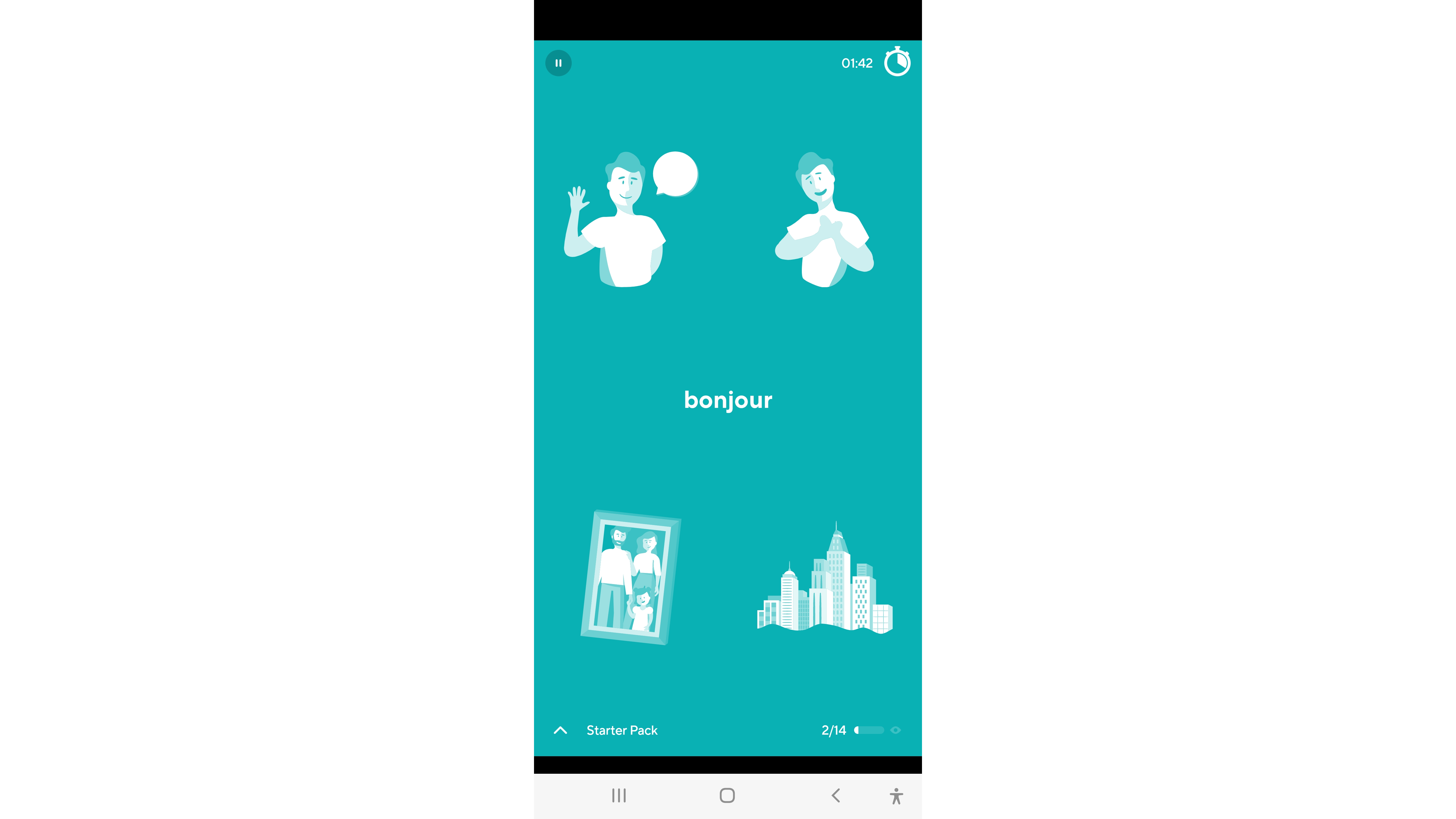 Op basis van je aanpasbare profiel krijg je een reeks woorden voorgeschoteld, inclusief uitspraak en een bijbehorende afbeelding. Kies zelf of je een woord wilt leren of niet. Je ontvangt dan gevarieerde oefeningen rondom de woorden en foutieve woorden worden vaker in andere oefeningen aangeboden. Je hoort dus telkens wel de uitspraak, maar de app bevat geen spreekoefeningen.