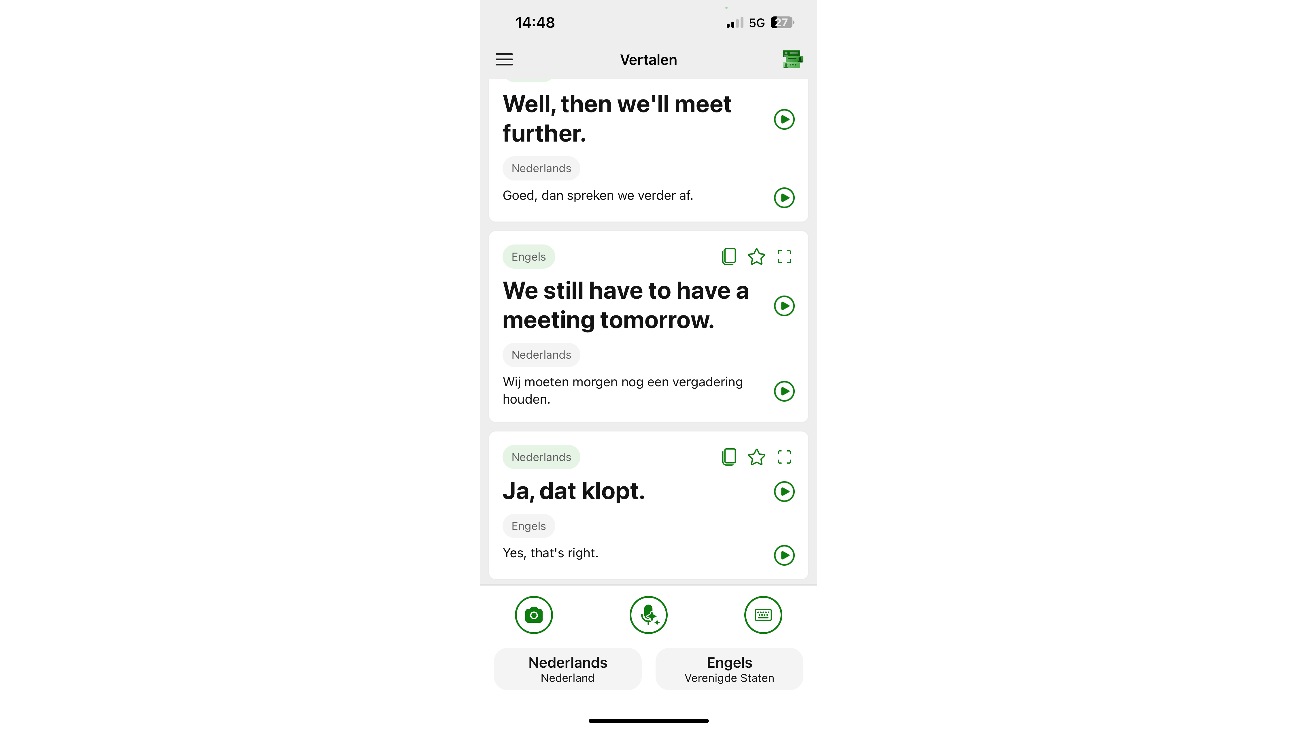 Ook handig om weten: deze app bevat ook een cameramodus waarmee je tekst op afbeeldingen of objecten, zoals verkeersborden of menukaarten, meteen kunt laten vertalen. Je hoeft alleen de bron- en doeltaal in te stellen. Een vergelijkbare mogelijkheid zit trouwens ook ingebouwd in de app Google Translate: je talen instellen, en de camera op het object met tekst richten volstaat om in realtime de vertaling te zien verschijnen.