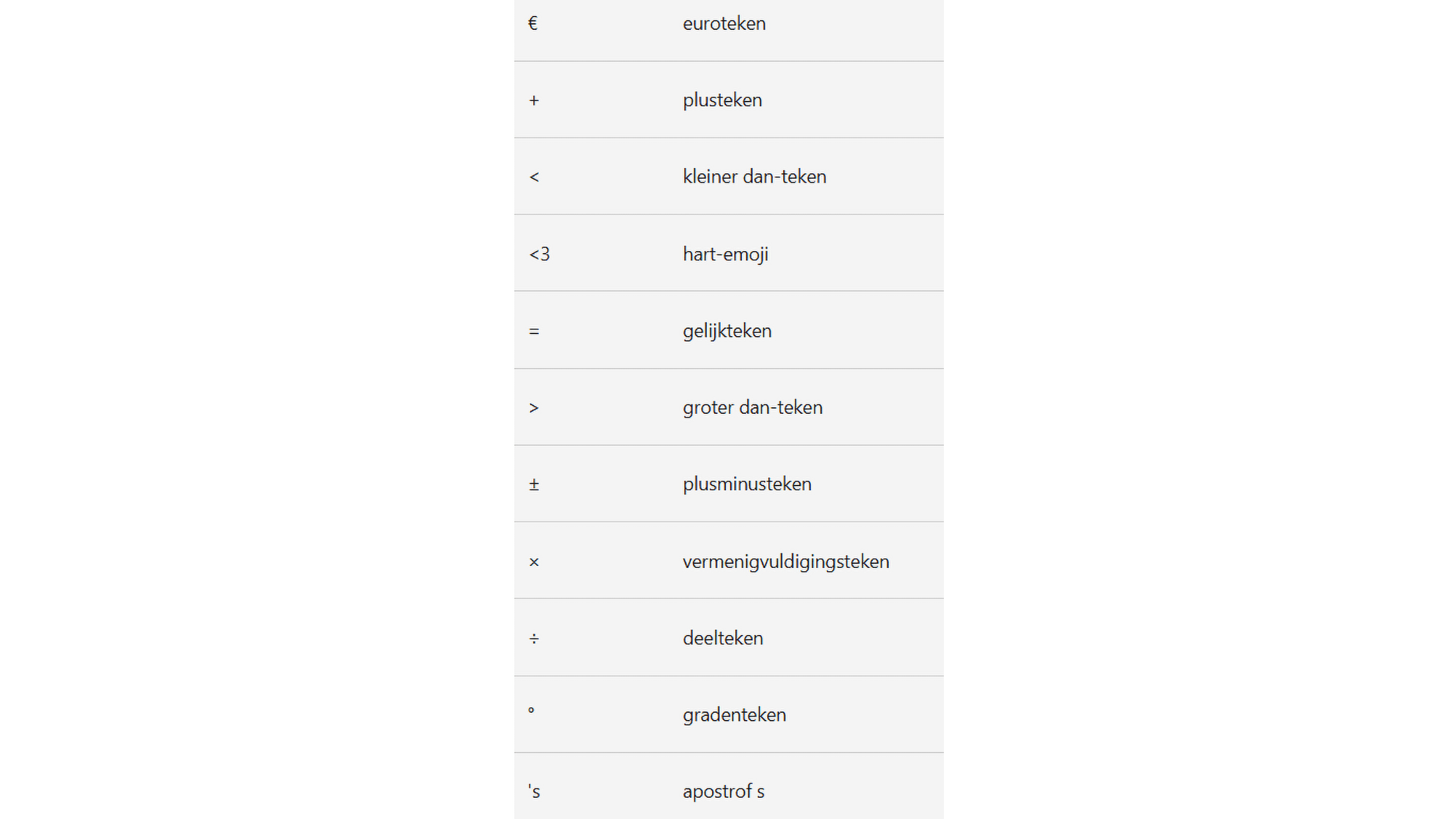 Alle interpuncties uit de lijst van de ondersteuningspagina kun je dicteren.