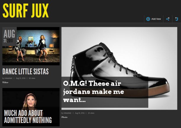 Na een erg registratieprocedure kunt u meteen aan de slag. Jux biedt zes verschillende soorten posts aan: quote, artikel, foto, video, diavoorstelling en countdown. U kunt beelden uploaden via harde schijf of plukken uit uw Flickr- of Facebook-account. Bovendien is het ook mogelijk om de beelden te bewerken aan de hand van enkele filters: lomo of zwart-wit bijvoorbeeld. Bijschriften toevoegen kan ook, in het lettertype en -grootte van uw keuze. Om videofragmenten te publiceren kunt u wel enkel met YouTube-fragmenten werken. Leuke bijkomstigheid is dat Jux zelf de geposte berichten schermvullend ordent per dag. De weergave is trouwens geoptimaliseerd voor gebruik op tablets.
