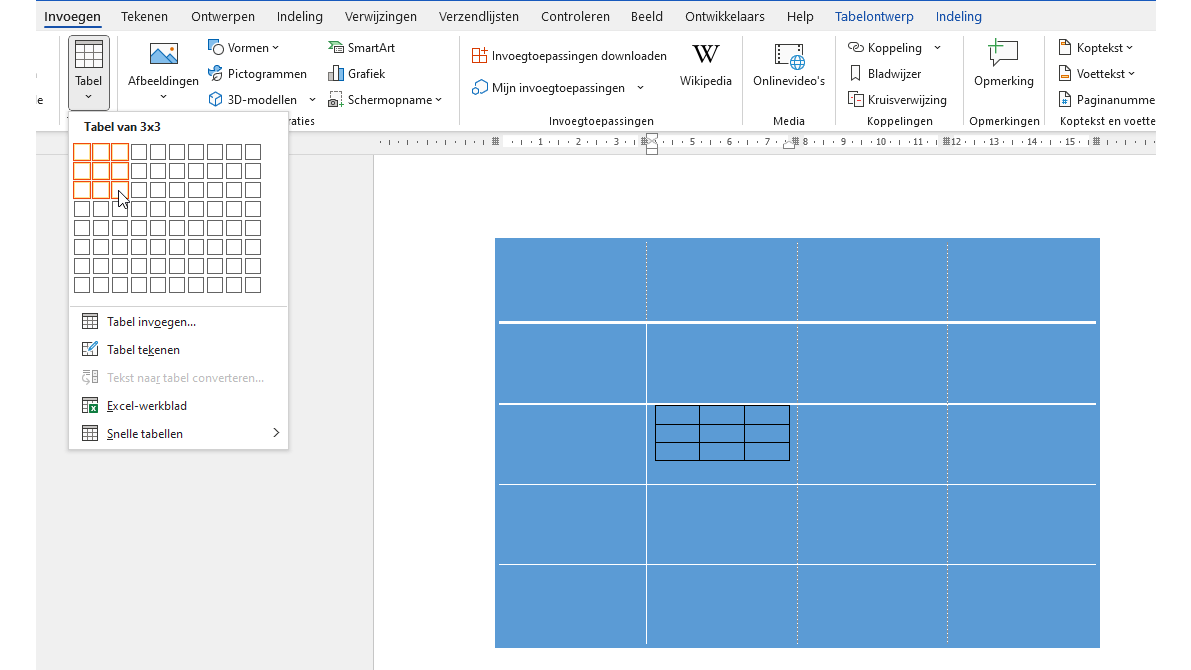 Laten we ervan uitgaan dat je al een tabel hebt gemaakt in Word, en dat je in een bepaalde cel graag een andere tabel wilt plaatsen. De combinatie van twee of meerdere tabellen heet geneste tabellen.