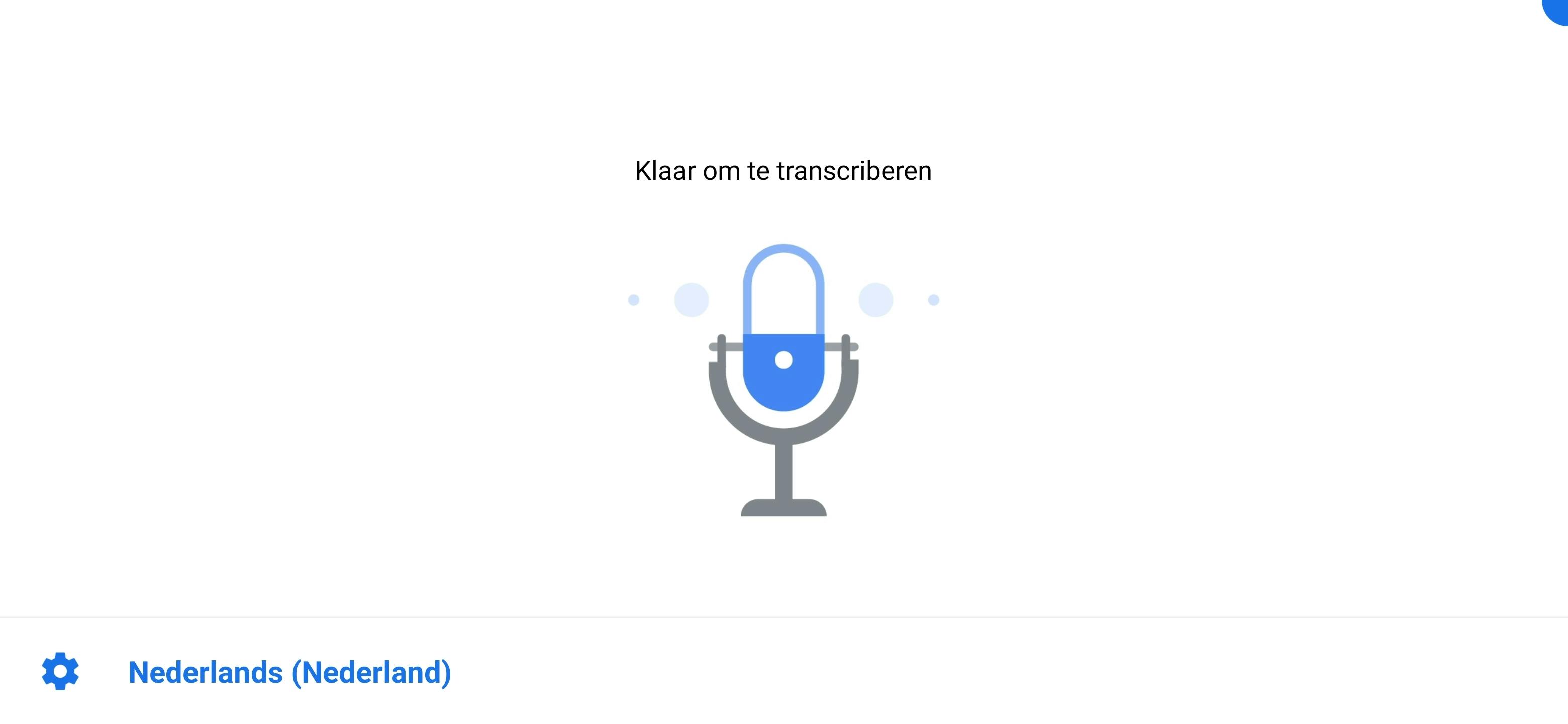 De app is eenvoudig van opzet, al is er wel een aantal instellingen die je even moet nalopen om hem optimaal te gebruiken. Zodra je Live transcriptie hebt gestart, zie je een grote microfoon op een nagenoeg blanco scherm. Begin met praten of richt de telefoon op een andere spreker en het gesproken woord wordt omgezet in tekst. Daar is wel een internetverbinding voor nodig.