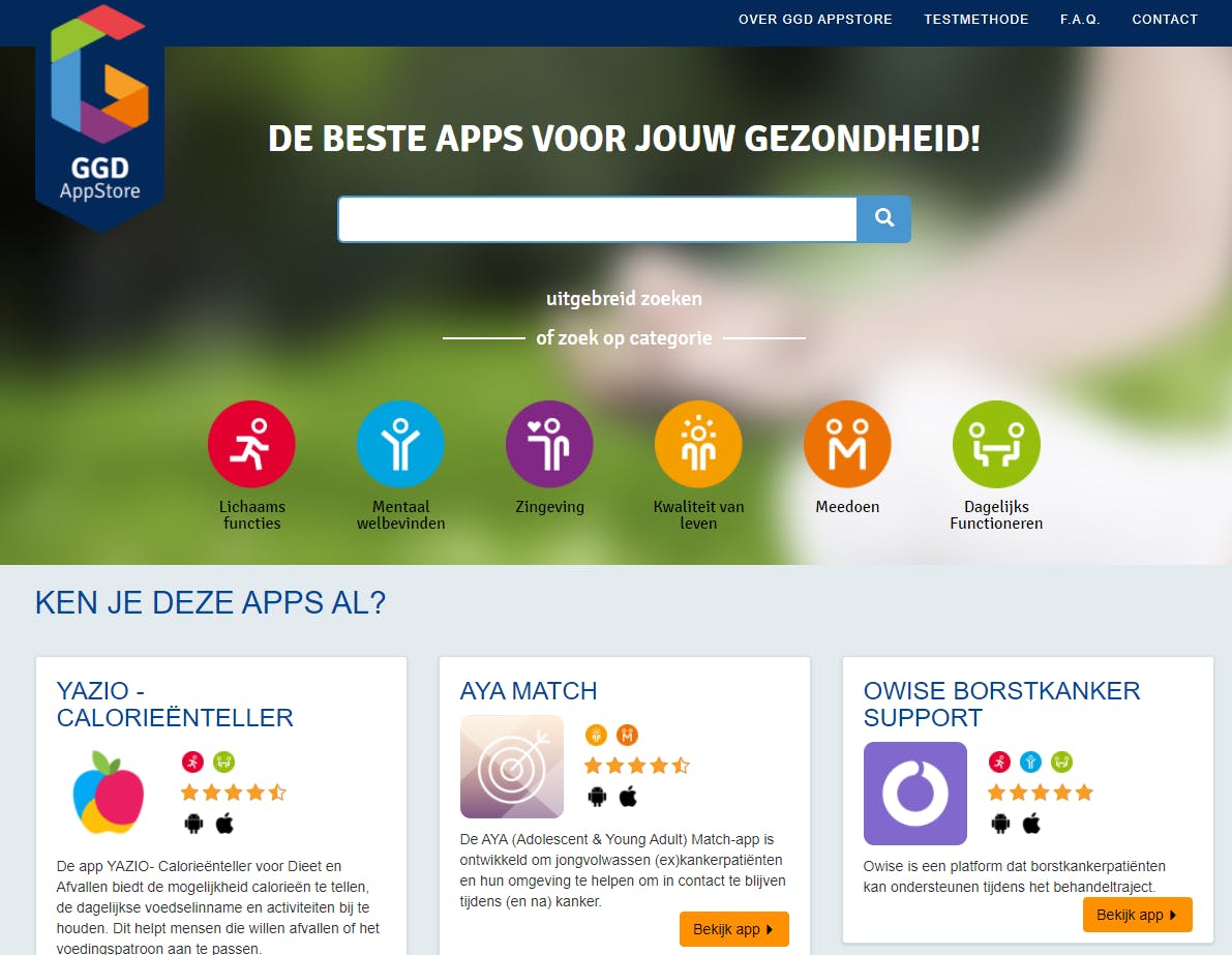 In samenwerking met kennisinstituten en patiënten- en consumentenorganisaties werkten alle 25 GGD-instanties aan één platform voor gezondheidsapps. En dat is volgens de GGD hard nodig: het aanbod gezondheidsapps is enorm groot, maar de juiste app vinden in de App Store van Apple of de Google Play Store valt niet mee. Er is volgens de GGD nauwelijks iets bekend over de betrouwbaarheid en effectiviteit van al deze apps. “Slechts enkele medische apps, die in medische behandelingen worden ingezet, zijn gevalideerd. Maar de rest nog niet”, aldus de gezondheidsdienst.