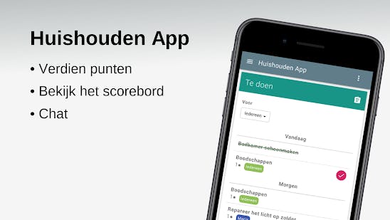 Is het huishouden een zware taak voor je, dan biedt de Huishouden App (de Android-versie vind je hier) wat houvast. Met de app kun je eenvoudig alle huishoudelijke taken op een rijtje zetten en om het leuk te maken voor kinderen (of natuurlijk voor jezelf), scoor je punten als er bepaalde taken worden volbracht. Hierdoor is de app heel leuk voor kinderen en het werkt motiverend, zo oordeelt de GGD.