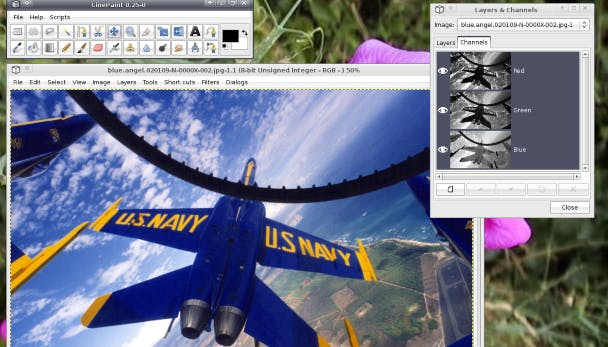 Daarnaast is GIMP uit te breiden zoals jij het zelf wilt. De broncode van de software is openbaar en dus door iedereen aan te passen. Dat levert een groot scala aan plug-ins en scripts op, die gratis zijn te downloaden. Een grote en fanatieke community is doorlopend bezig het programma door te ontwikkelen. Projecten gemaakt in GIMP zijn te bewaren in allerlei bestandsformaten, waaronder zelfs het Photoshop-bestandsformaat. Een technisch voordeel van GIMP is dat je kunt inzoomen tot maar liefst 25600 procent, terwijl Photoshop niet verder gaat dan 3200 procent. GIMP werkt dus zeer nauwkeurig.