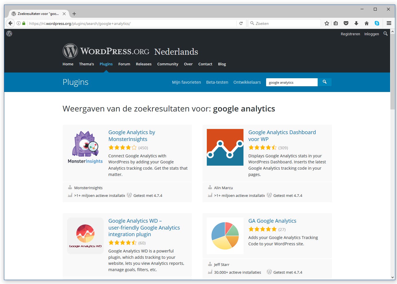 Een plug-in vraagt meestal alleen om de Tracking-ID, en zet de trackingcode zelf op iedere pagina op de juiste plek. Sommige plug-ins, zoals Google Analytics Dashboard voor WP, maken tevens de belangrijkste meetgegevens binnen WordPress zichtbaar.