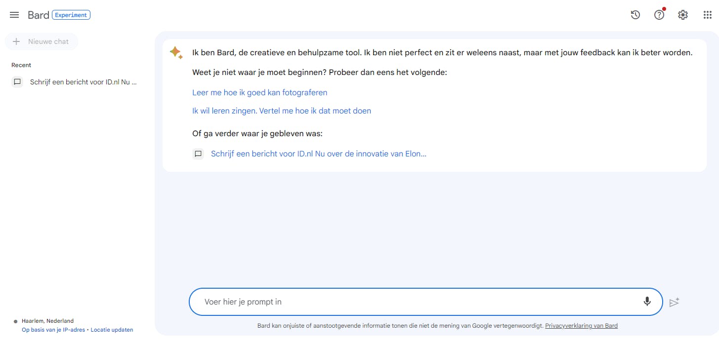 Google's AI-chatbot Bard eindelijk beschikbaar in Nederland