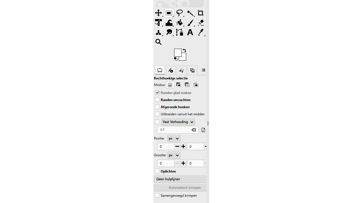Je bent overigens niet afhankelijk van dit menu: je kunt de functies ook bereiken via de werkbalk die standaard links in het venster wordt getoond. Houd de muisaanwijzer boven een knop voor meer informatie. Veel functies hebben gedetailleerde eigenschappen. Klik je bijvoorbeeld op Penseel, dan kun je kiezen welke grootte het penseel heeft, welk inkttype en welke kleuropties worden gehanteerd. Gimp toont die eigenschappen in het venster Gereedschapsopties, direct onder de werkbalk waarop je de eerdergenoemde opties vindt.