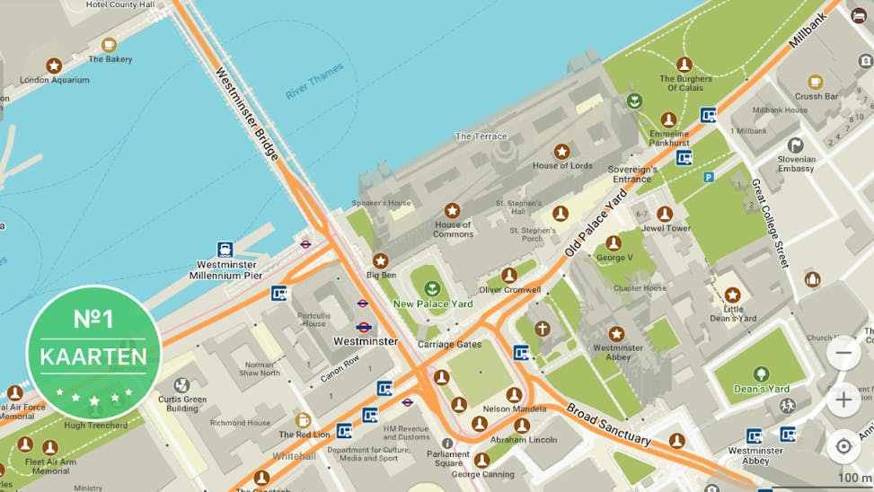 Overigens kan je de taal van de gesproken instructies naar smaak wijzigen. Sluit daarvoor de navigatiemodus eerst af, en tik op de driestreepjes-knop. Tik op Instellingen en dan op Gesproken taal. Via Andere krijg je toegang tot zo ongeveer elke denkbare taal. In iOS is het mogelijk nog noodzakelijk om in de app Instellingen onder Algemeen, Toegankelijkheid en Spraak de opties Spreek selectie uit en Spreek scherm uit aan te zetten. Via Stemmen kun je vervolgens ook nog verbeterde stemmen downloaden. Die nemen meer opslagruimte in, maar klinken - inderdaad - een stuk beter.