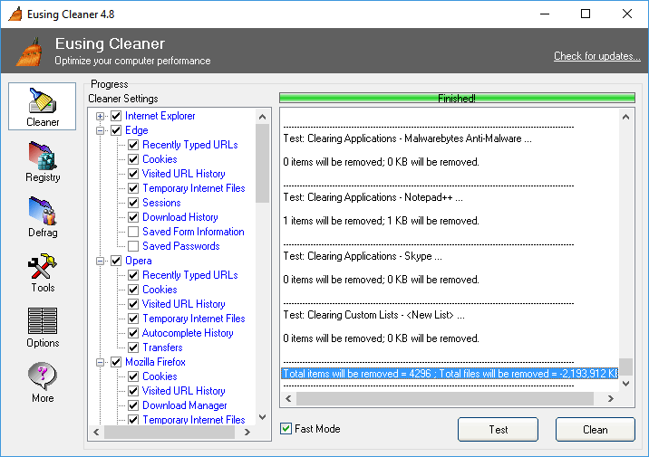 Eusing Cleaner voldoet aan de omschrijving ‘beter slim gepikt dan slecht verzonnen’. Het programma lijkt een kloon van CCleaner, een van de meest populaire schoonmaakprogramma’s. We bespreken Eusing Cleaner omdat het programma regelmatig op internet wordt genoemd vanwege goede prestaties. Een paar onderzoekjes op een testsysteem wijzen anders uit. Eusing Cleaner is goed in staat om tijdelijke bestanden te verwijderen uit bijvoorbeeld je browsers of achtergebleven restjes van installaties, maar CCleaner doet dit beter. Zo spoorde Eusing Cleaner ruim 2 GB op aan overbodige bestanden, terwijl CCleaner bijna 8 GB aan ruimtevreters kon vinden. Eusing Cleaner start wel iets sneller dan CCleaner en is, mede omdat de functies beperkter zijn, overzichtelijker dan ‘het origineel’.