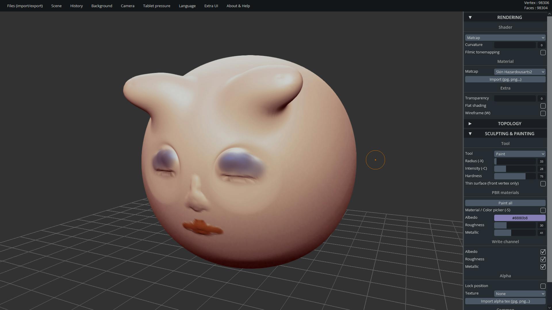 De werking van SculptGL doet nog het meest denken aan boetseren met klei, iets wat we op jonge leeftijd allemaal weleens gedaan hebben. Je begint met een bol virtuele klei en die kun je met je muis eenvoudig indeuken en uitrekken, waarbij het programma automatisch symmetrie kan toevoegen. Is de vorm naar wens, dan kun je tot slot kleurtjes aanbrengen.