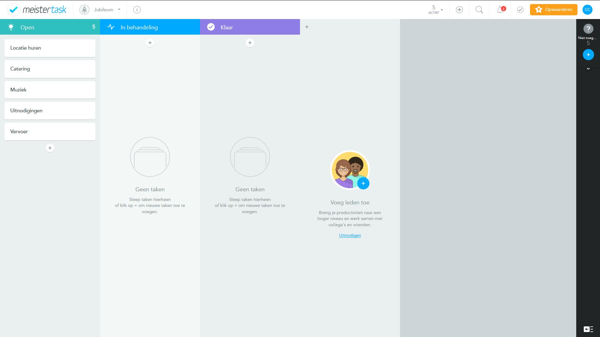 Wanneer je wekelijks met meerdere mensen aan een project werkt kun je niet zonder professionele en doorgaans betaalde software om zicht te houden op wie wat aan het doen is. Voor het – soms letterlijke - huis-tuin-en-keukenwerk zijn er ook goede gratis opties, bijvoorbeeld Meistertask.