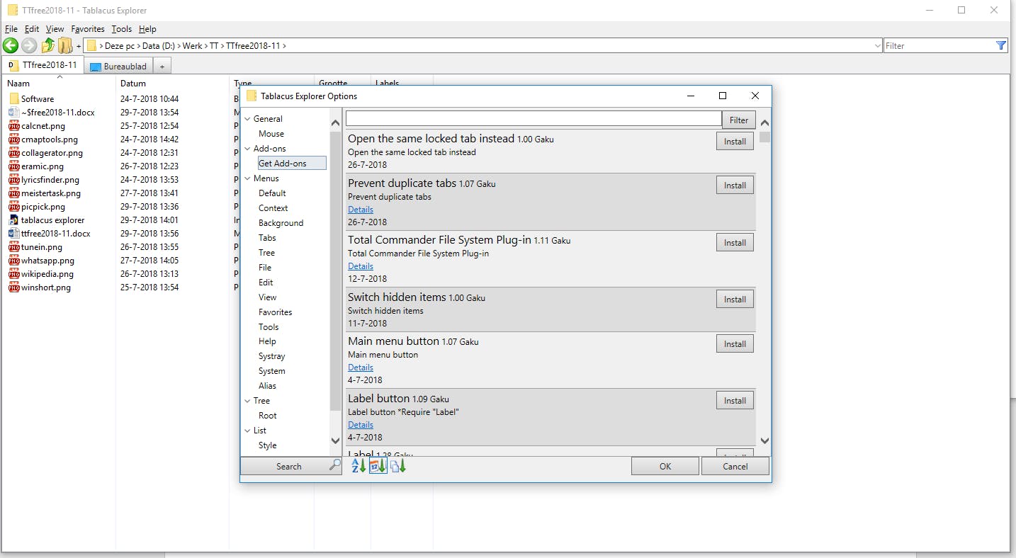 Alsof dat allemaal nog niet genoeg reden is om met Tablacus aan de slag te willen, biedt het programma ook nog add-ons. Deze kun je eenvoudig vanuit het programma zelf zoeken en installeren. Sommige van deze add-ons breiden de functionaliteit van Tablacus uit terwijl andere meer controle geven over het uiterlijk.