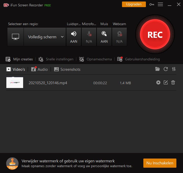 Met iFun maak je opnamen zonder tijdslimiet en in resoluties tot 4K. De enige tol die je daarvoor betaalt, is een klein watermerk. Je kunt het hele scherm of een deel ervan vastleggen en daaraan ook geluid van een microfoon en beeld van een webcam toevoegen. Vooral dat laatste is populair bij YouTubers. Daarnaast kun je muisbewegingen en -kliks zichtbaar maken, wat voor een instructievideo natuurlijk onmisbaar is. Het eindresultaat kun je opslaan in verschillende bestandsformaten.