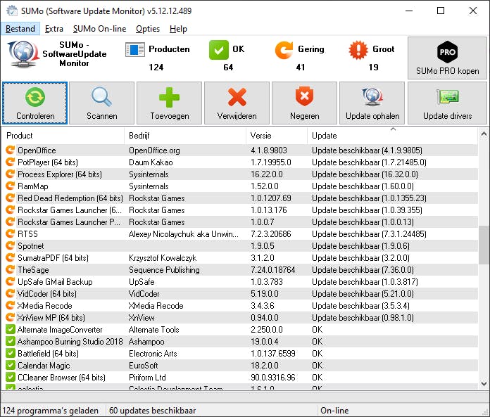 SUMo staat voor Software Update Monitor en de makers ervan beheren een gigantische database met versienummers voor heel vele bekende en minder bekende toepassingen en games. Wanneer je je systeem met SUMo scant, zie je meteen welke software kan worden bijgewerkt. Kleurcodes geven het belang van updates aan. In de gratis versie moet je updates helaas zelf downloaden, terwijl de betaalde variant dat automatisch kan.