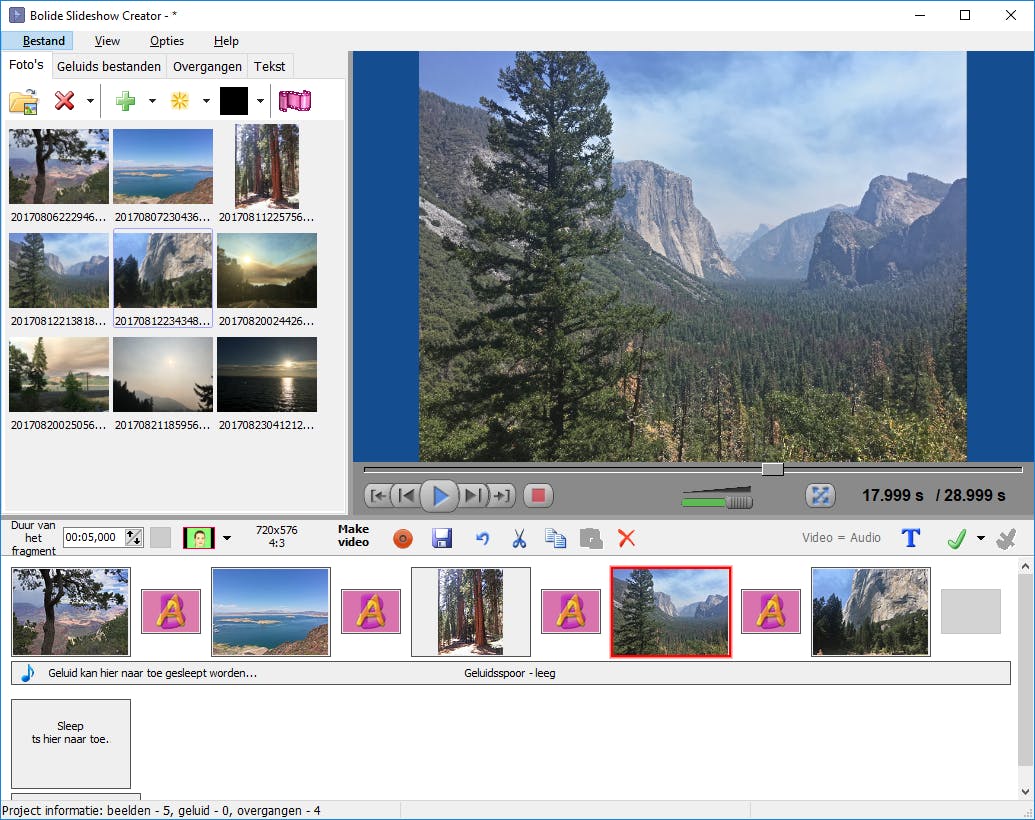 Nu schieten we onze vakantiefoto’s met honderden achterelkaar en delen we de resultaten direct op sociale media. En die lange winteravonden? Die kunnen we nu gebruiken om van een selectie uit al die digitale foto’s een mooie diashow te maken. Hoewel, winteravonden … Met Bolide Slideshow Creator is het zo gepiept. Stop je alle gewenste foto’s in de bibliotheek van het programma, dan kan het de diashow volautomatisch maken met vaste of willekeurige overgangen. Je kunt er echter ook voor kiezen om handmatig overgangen te kiezen en in te stellen. Daarnaast kun je teksten en muziek toevoegen. Op de pc bekijk je de show vervolgens op hoge resolutie. Wil je hem als video met de wereld delen, dan kan dat alleen in dvd-kwaliteit.