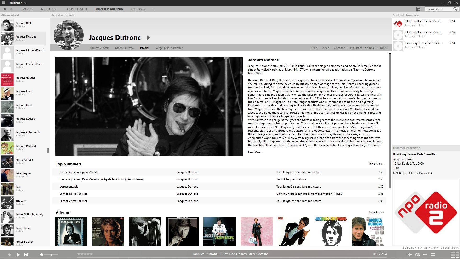 Met MusicBee scan je moeiteloos verzamelingen met tienduizenden nummers in verschillende formaten. Is daarbij niet alles van de juiste tag voorzien, dan kun je dat eenvoudig aanpassen. Voor het afspelen van muziek biedt MusicBee niet alleen een uitgebreide equalizer, maar ook verschillende dsp’s, bijvoorbeeld voor het verbreden van het stereobeeld. Tijdens het afspelen haalt het programma waar mogelijk songteksten op en een foto van de artiest. Een contextmenu op deze foto stuurt je vervolgens met één muisklik naar het Wikipedia-artikel over de artiest of naar YouTube-clips. Daarnaast is het mogelijk om binnen MusicBee zelf een profiel van de artiest op te vragen en te grasduinen in de rest van diens oeuvre, voor zover je dat bezit.