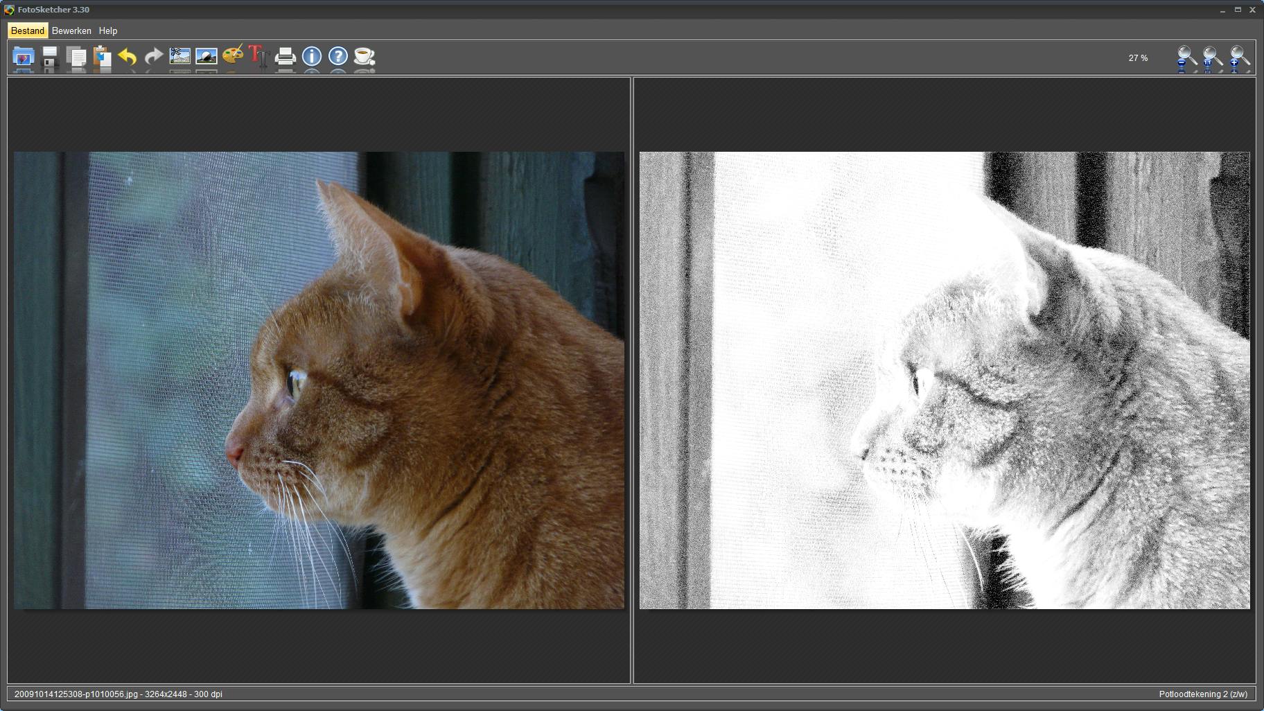 In de categorie gratis en voor de pc is er Fotosketcher. Dit programma van Duitse origine biedt een groot aantal grafische stijlen voor onder andere potlood- en pentekeningen en olie- of waterverfschilderijen. Daarnaast zijn er stijlen om foto’s om te toveren tot cartoon of pointillistisch schilderij, en zijn er wat filters om foto’s te verbeteren of verouderen. Elke foto kun je bovendien van een lijstje voorzien.