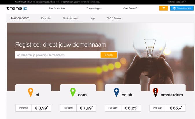Tip 08 Zoek via Google naar goedkope domeinnamen. Bij TransIP betaal je voor het eerste jaar amper 4 euro voor een .nl-domein.
