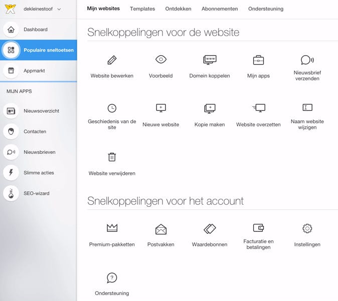 Een website bouwen is een tijdrovende klus maar daar stopt het niet bij. Je moet 'm ook constant onderhouden en up-to-date houden. Om dat te doen, surf je telkens naar www.wix.com en log je in met je account. Via Mijn websites krijg je een overzicht van websites die jij beheert. Via Site bewerken ga je naar de bewerkmodus en kun je extra inhoud toevoegen of aanpassingen maken. Klik op Website beheren om naar je dashboard te gaan. Hier kun je onder andere een nieuwsbrief opmaken en versturen, de geschiedenis van je website bekijken of de naam van je website veranderen.