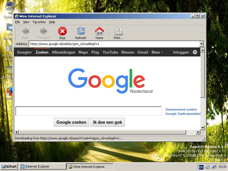 Het is even zoeken, maar in ReactOS is er standaard al een browser aanwezig. Het betreft een sterk verouderde versie van Internet Explorer. Het programma geeft veel moderne websites helaas niet correct weer. Wil je het evengoed even uitproberen? Op het bureaublad klik je op My Computer, waarna je bladert naar Local Disk (C:) / Program Files / Internet Explorer. Dubbelklik op iexplore.exe om deze eenvoudige browser te gebruiken. Via File / Properties stel je een startpagina in. Verder sla je eventueel favoriete webpagina’s op.