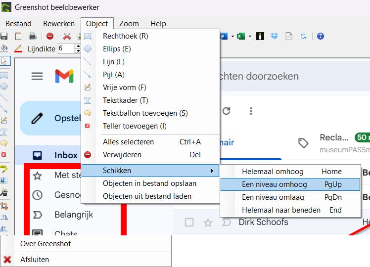 Greenshot heeft een interessante beeldbewerker die afgestemd is op wat men doorgaans met schermafbeeldingen doet. Eerst maak je een schermafbeelding en daarna kies je de optie In beeldbewerker. Je kunt inzoomen op de afbeelding, bovenaan staan ook de verschillende uitvoermogelijkheden (onder meer voor Outlook, Word, OneNote, PowerPoint en DropBox).