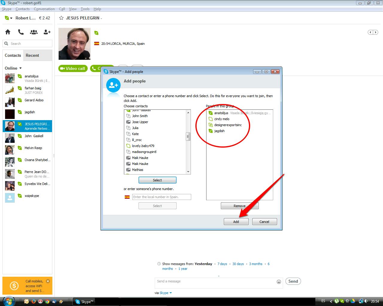 Geef deze groep een herkenbare naam en klik op 'Add' (of 'Toevoegen') om deze groep aan je contactlijst toe te voegen zodat je in de toekomst alleen de groep hoeft te selecteren.