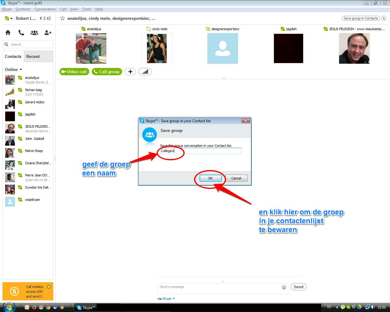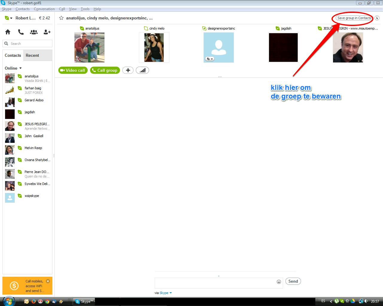 Denk je vaker met deze groep (video) groepsgesprekken te maken, klik dan op 'Save group in contacts' (of 'Deze groep bewaren')