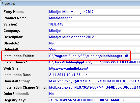 MyUninstaller toont waar u de basismap van een geïnstalleerd programma kunt vinden.
