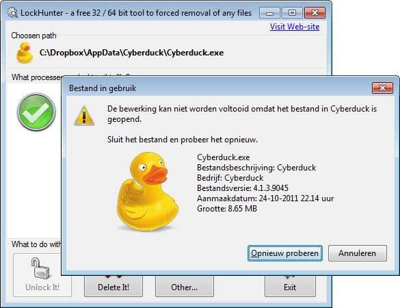 Gebruik LockHunter of Delete Doctor als u een bestand niet op de normale manier mag verwijderen.